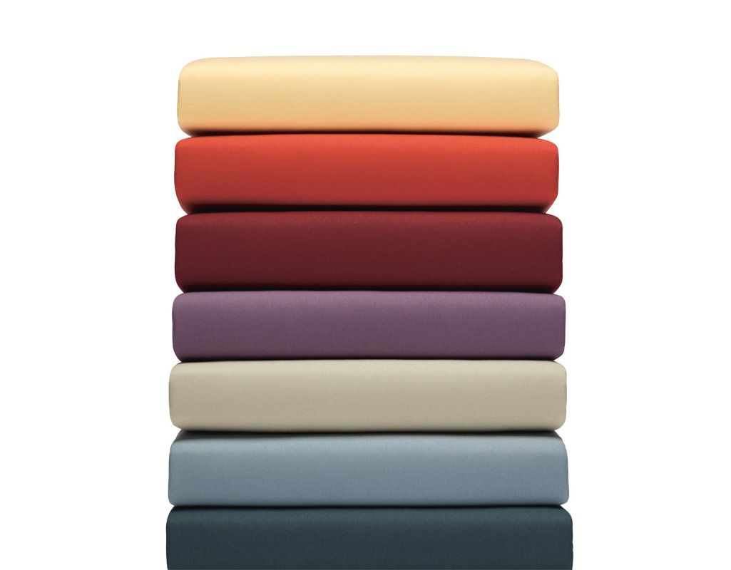 Kollektion an Edel-Linon Spannbettlaken gestapelt in vielen Farben Bio Baumwolle