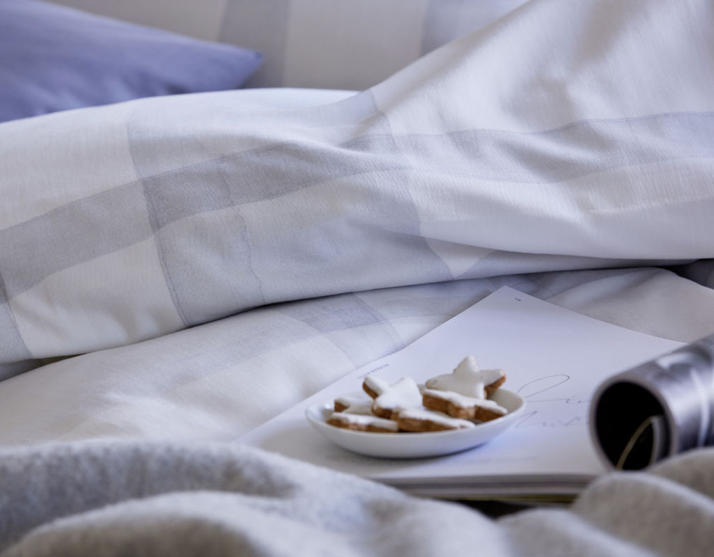 Vzdušné a lehké bio povlečení v šedé a bílé kostkované akvarelové barvě