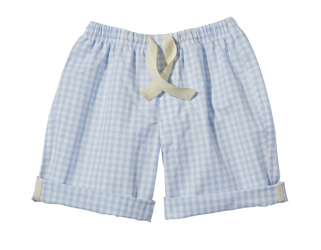Kinder Shorts mit Vichy Karo Muster aus Bio Baumwolle gelegt in Hellblau