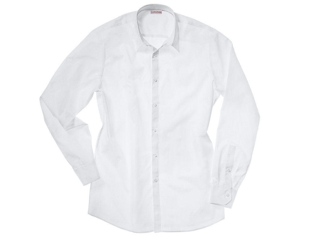 Herren Hemd aus Bio Zwirn mit New-Kent Kragen und extra Langarm in Weiß mit optischen Aufhellern